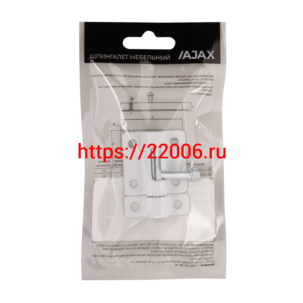 - Шпингалет Ajax (Аякс) мебельный металлический SPD40х30 WH белый в Нижнем Новгороде недорого