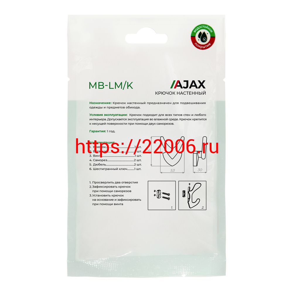 - Крючок Ajax (Аякс) настенный MB-LM/K-003 BL черный в Нижнем Новгороде недорого