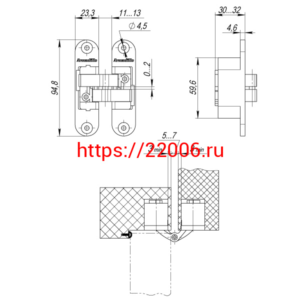 - Петля Armadillo (Армадилло) скрытой установки U3D4200L CP левая (Architect 3D-ACH 40) хром 40 кг в Нижнем Новгороде недорого
