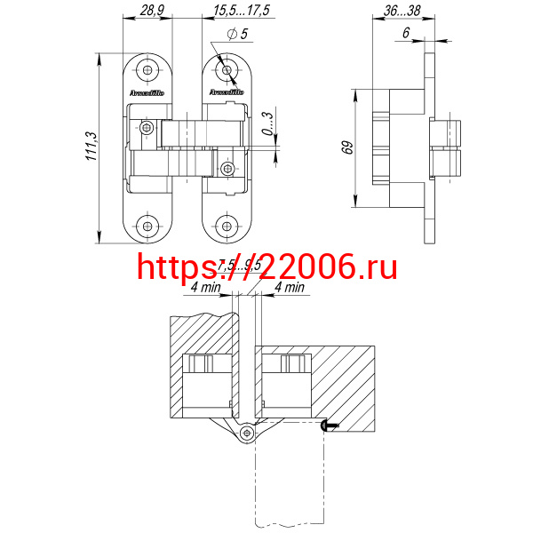 - Петля Armadillo (Армадилло) скрытой установки U3D6200R SG правая (Architect 3D-ACH 60) мат. золото 60 кг в Нижнем Новгороде недорого
