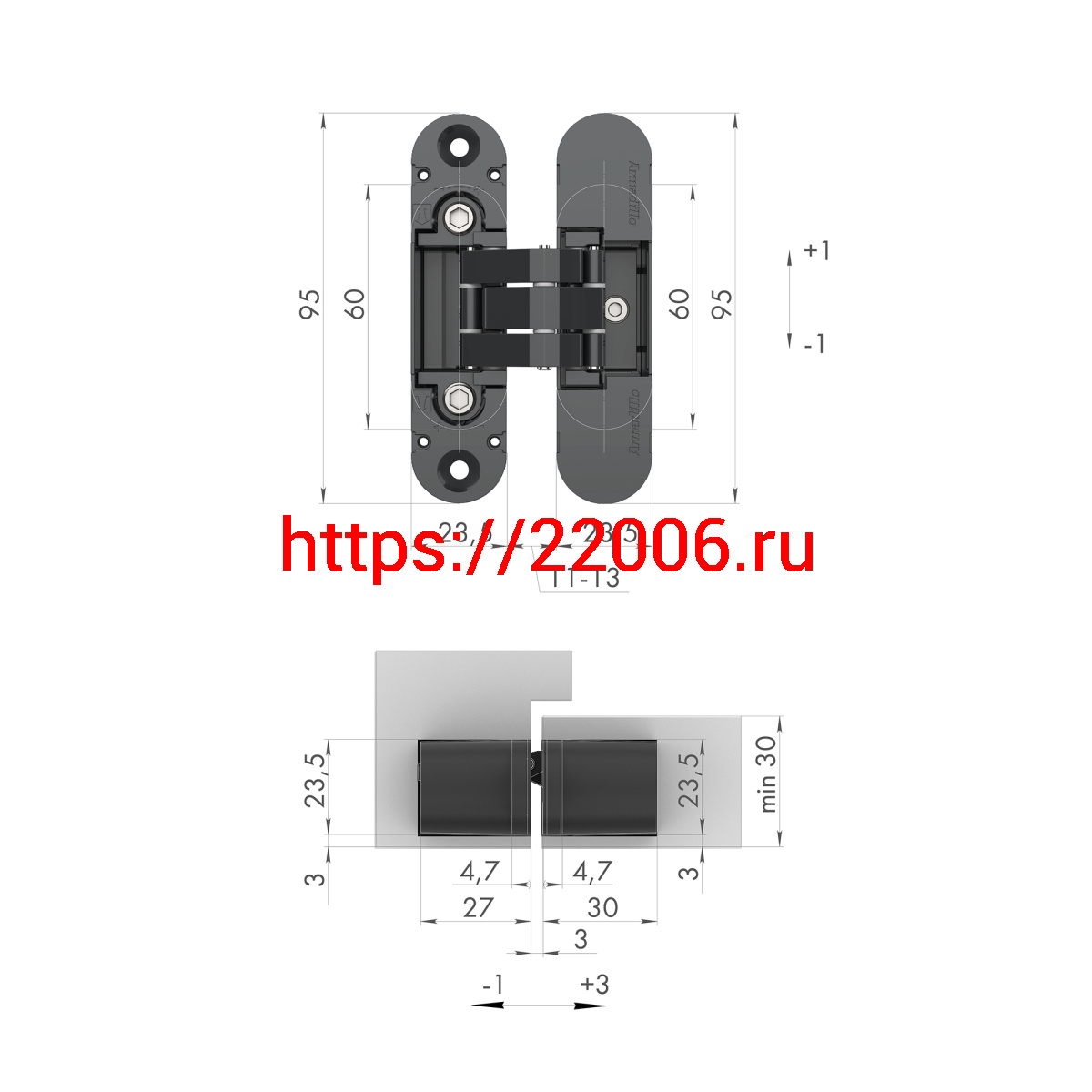 - Петля Armadillo (Армадилло) скрытой установки U3D4000 AB (9540UN3D) бронза в Нижнем Новгороде недорого