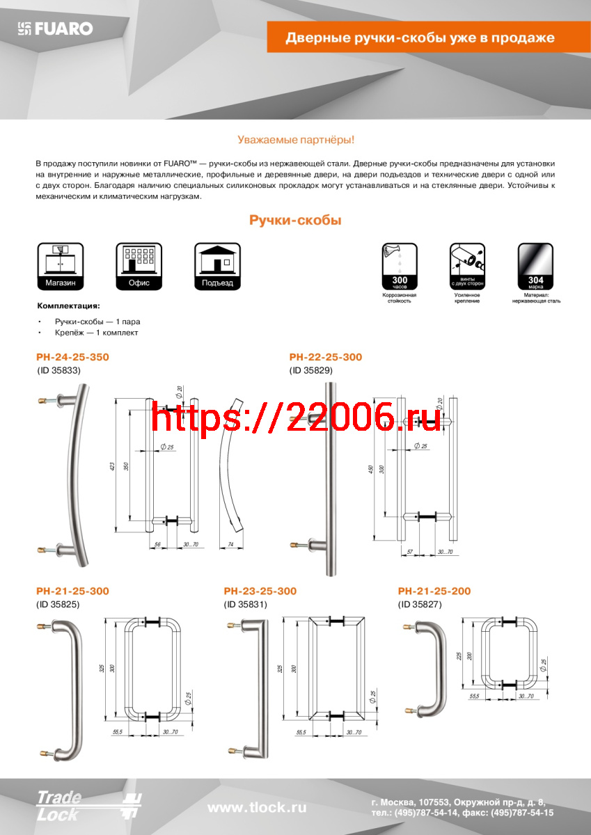 - Ручка-скоба Fuaro (Фуаро) PULL.PH25/300.21 INOX 304 (PH-21-25/300-INOX) в Нижнем Новгороде недорого