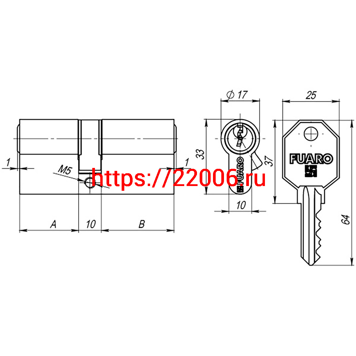 - Цилиндровый Fuaro (Фуаро) механизм (100 CA/105) 1000CAKey105(30+10+65) CP хром 3Key в Нижнем Новгороде недорого