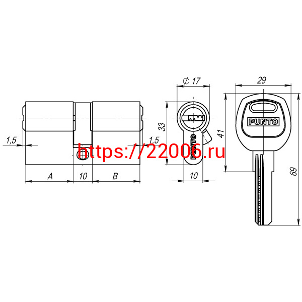 - Цилиндровый Punto (Пунто) механизм (A200/80) A2000Key80(35+10+35) SN никель в Нижнем Новгороде недорого