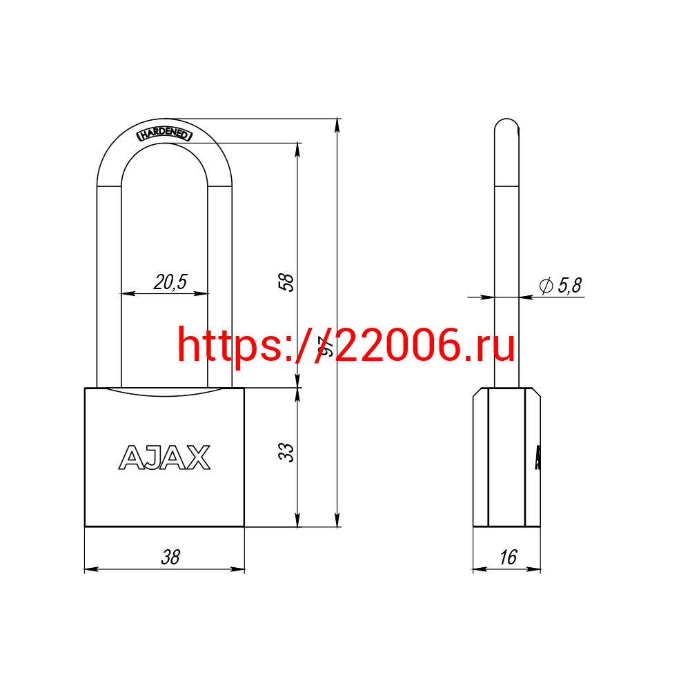 - Замок Ajax (Аякс) навесной PD-0138-L (PD-01-38-L) 3 key англ. в Нижнем Новгороде недорого