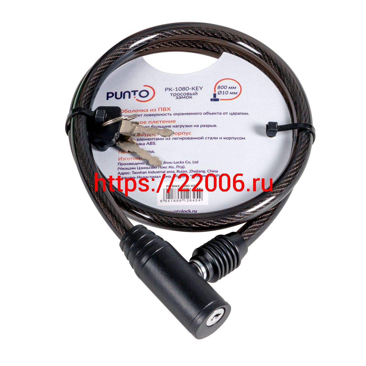 - Замок Punto (Пунто) тросовый PK-BIKE-1080-KEY (10х800) 2key/подвес в Нижнем Новгороде недорого