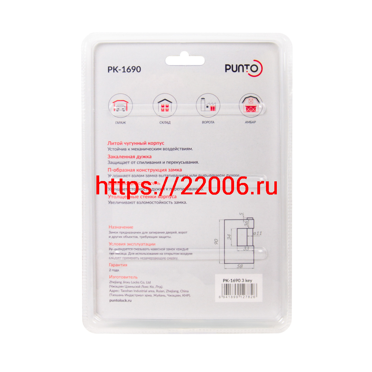 - Замок Punto (Пунто) навесной PK-1690 3 key англ. в Нижнем Новгороде недорого