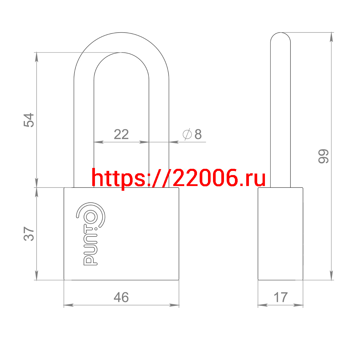 - Замок Punto (Пунто) навесной PK-1550L 3 key диск.ключ длиная дужка в Нижнем Новгороде недорого