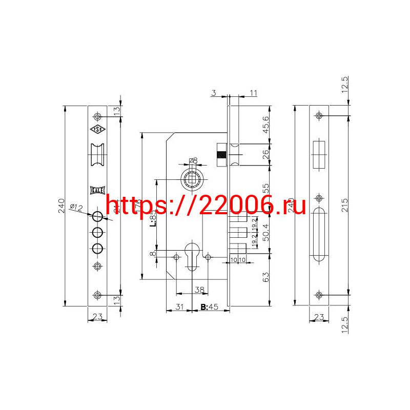 - Корпус Kale kilit (Кале килит) врезного замка с защёлкой 152/3MR (45 mm) w/b (никель) в Нижнем Новгороде недорого
