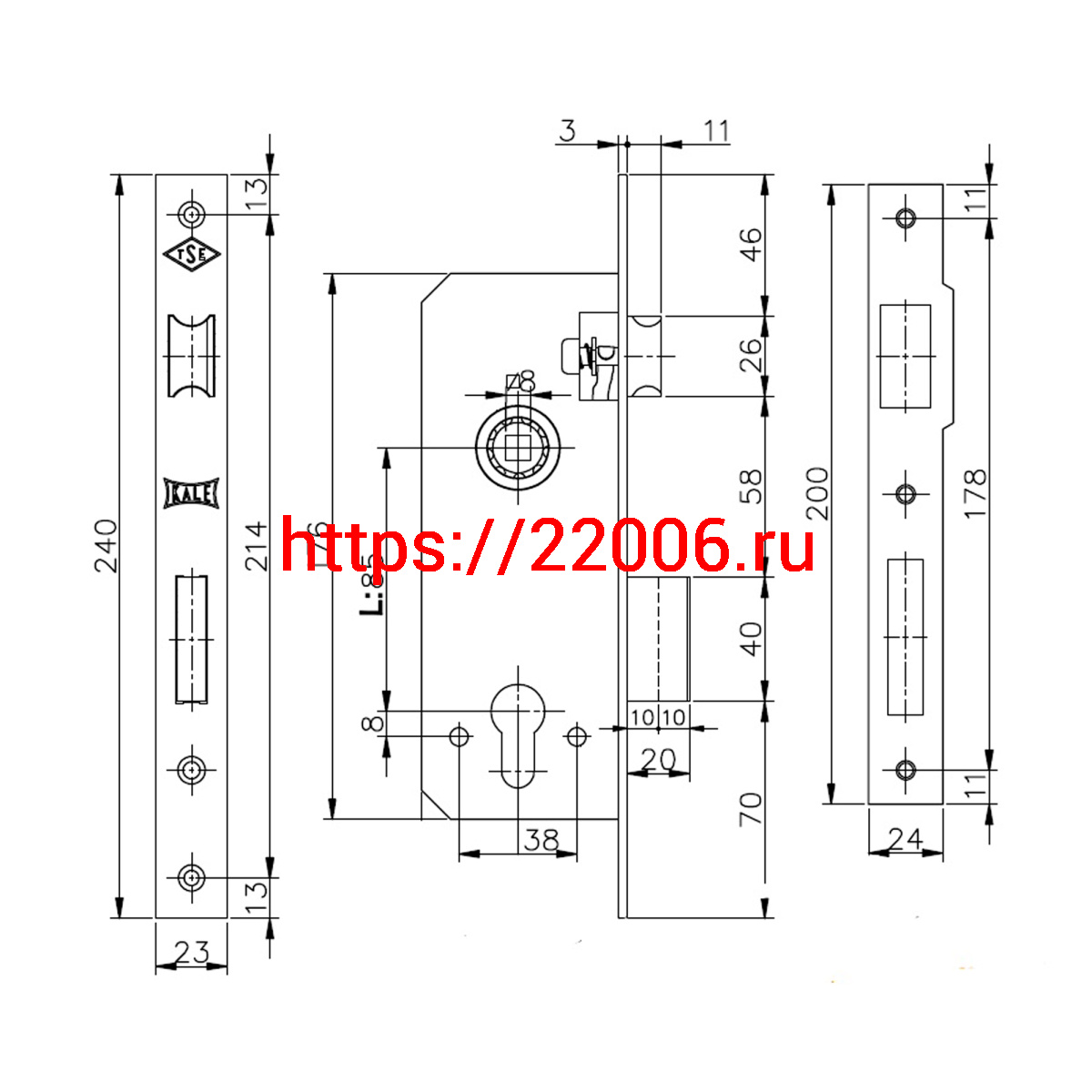 - Корпус Kale kilit (Кале килит) врезного замка с защёлкой 152/R (35 mm) w/b (латунь) в Нижнем Новгороде недорого