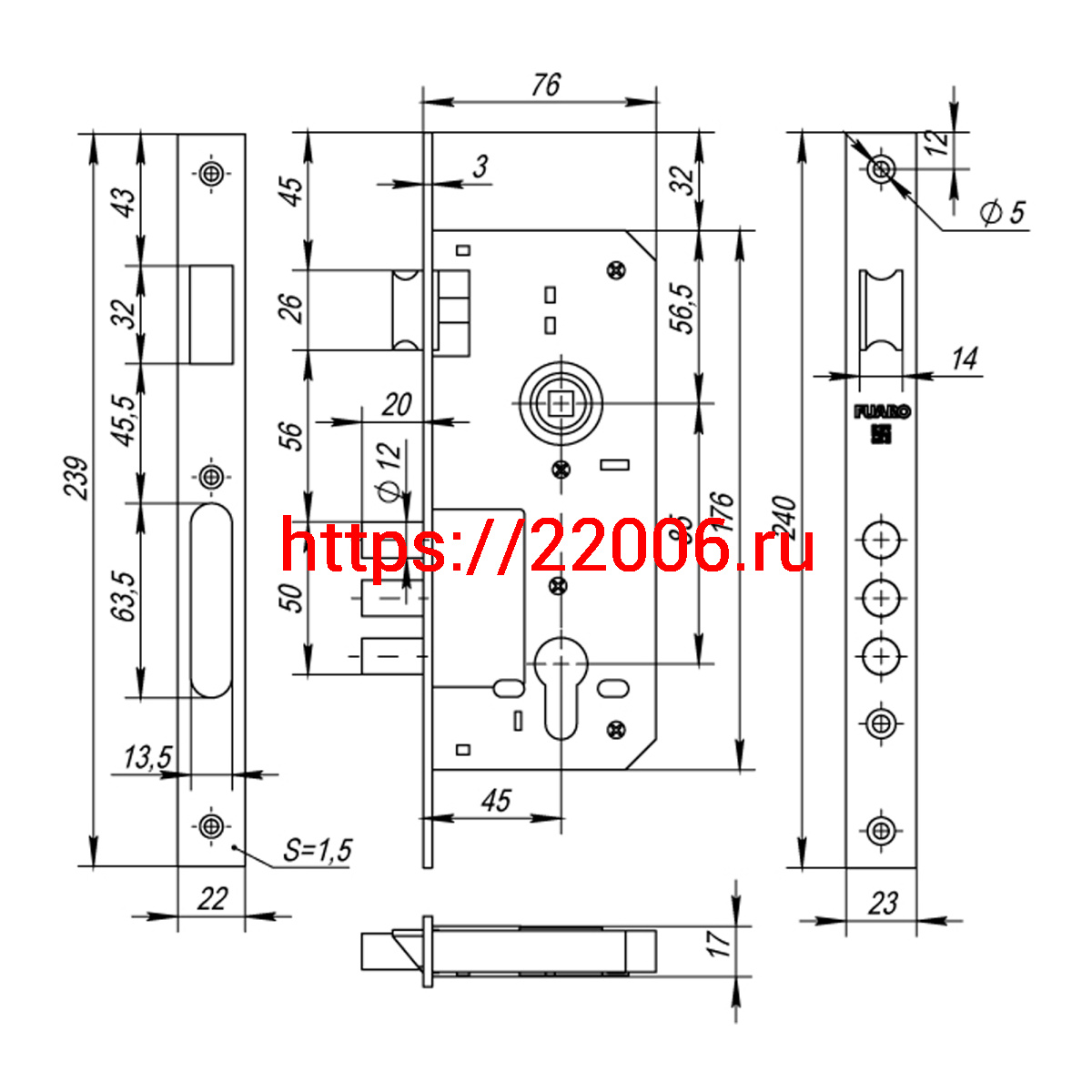 - Корпус Fuaro (Фуаро) врезного замка с защёлкой DD900/C-45.85.3MR (900 3MR W/B) PB латунь в Нижнем Новгороде недорого