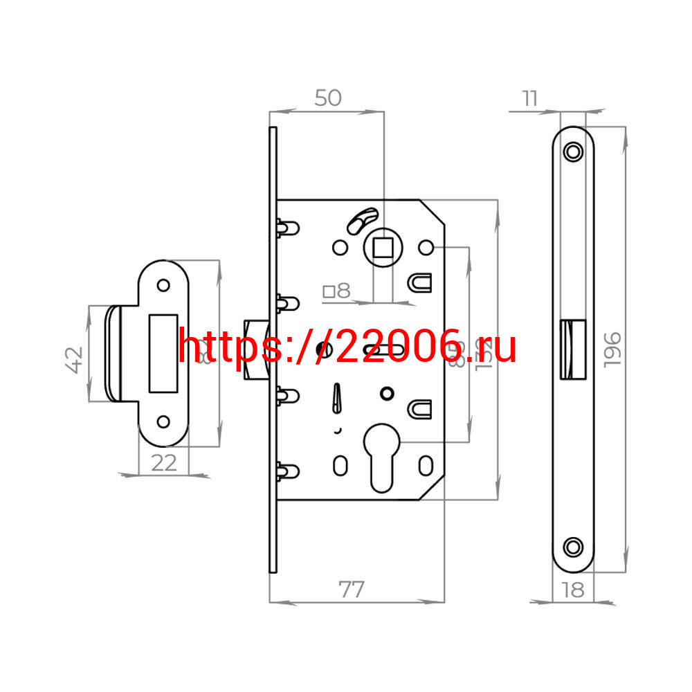 - Корпус Ajax (Аякс) врезного замка c защёлкой PLASTLP85-50 SN матовый никель в Нижнем Новгороде недорого