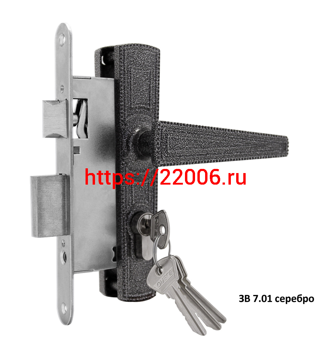 - Замок Omega (Омега) врезной цилиндровый с защёлкой в комплекте с ручкой ЗВ7.01 (серебро), 4 кл. в Нижнем Новгороде недорого
