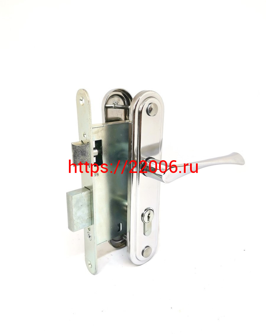 - Замок Omega (Омега) врезной цилиндровый с защёлкой в комплекте с ручкой ЗВ7 (хром лак), 4 кл. в Нижнем Новгороде недорого