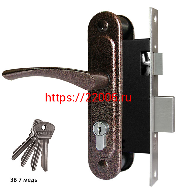 - Замок Omega (Омега) врезной цилиндровый с защёлкой в комплекте с ручкой ЗВ7 (медь), 4 кл. в Нижнем Новгороде недорого