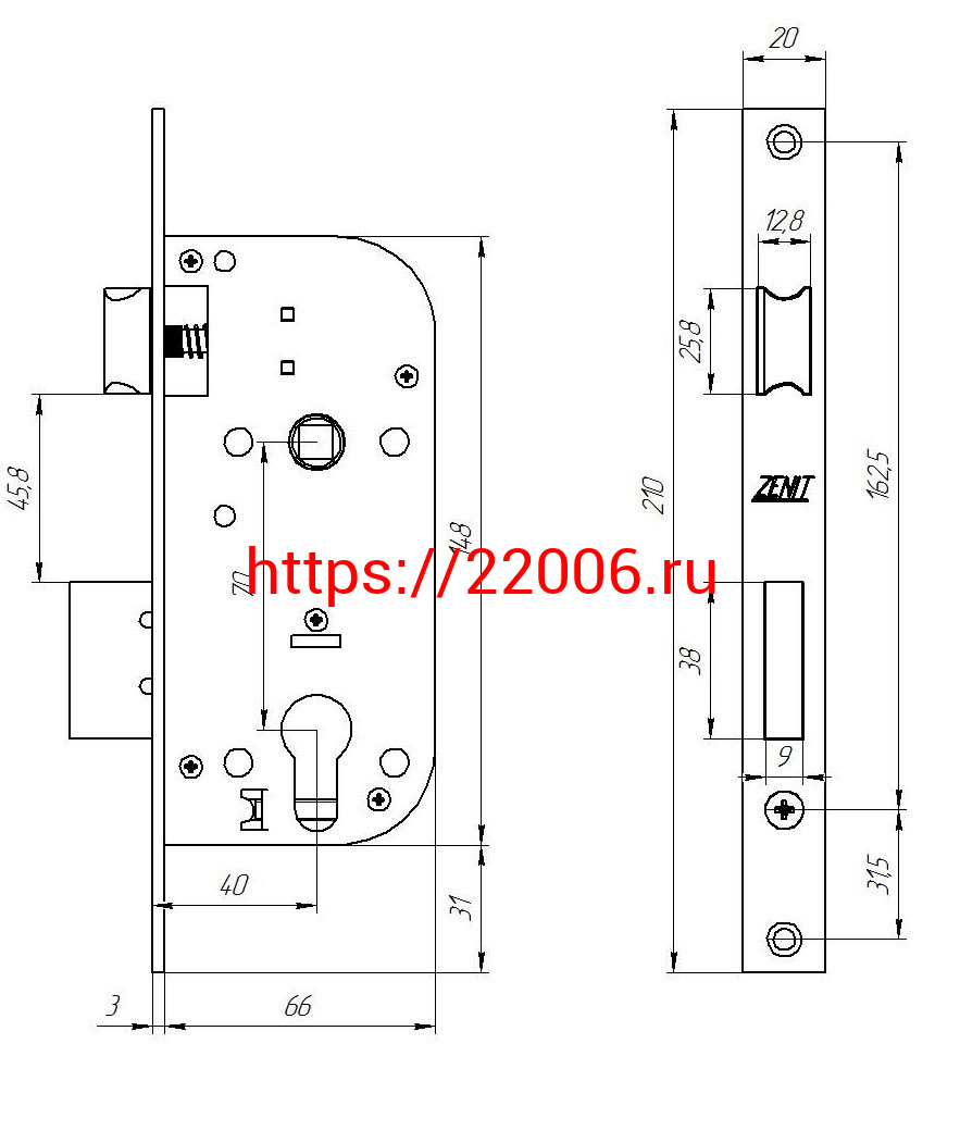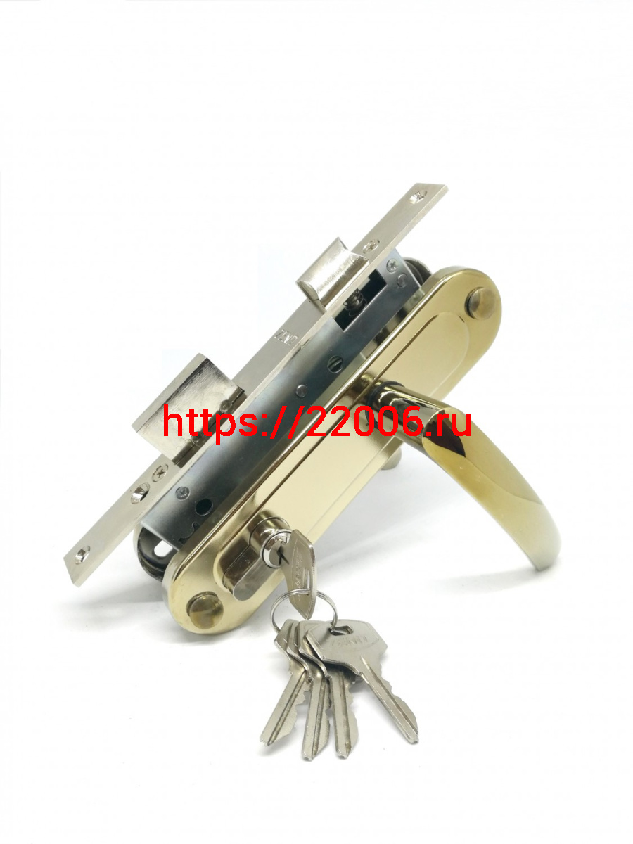 - Замок Zenit (Зенит) врезной цилиндровый с защёлкой в комплекте с ручкой ЗВ7-70.4-02 (золото лак), 5 кл. в Нижнем Новгороде недорого