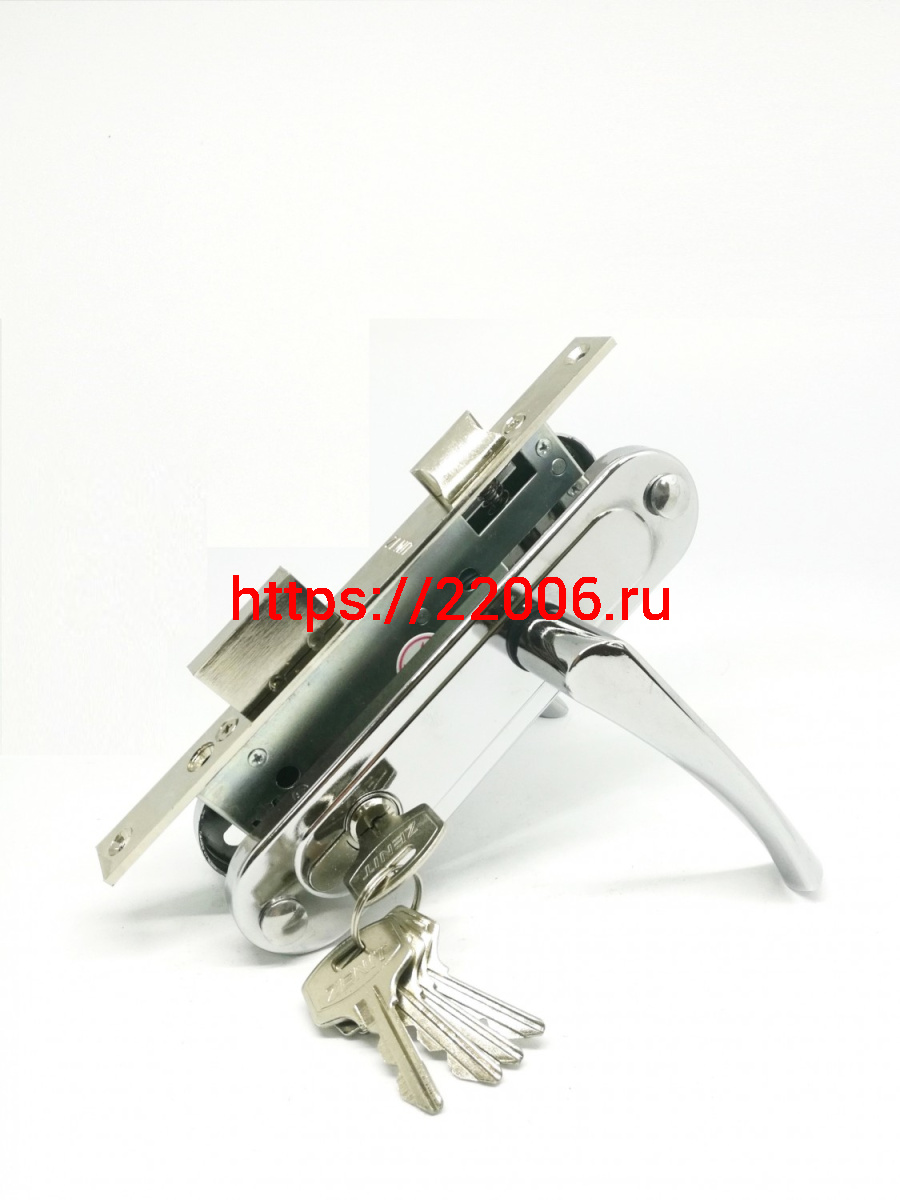 - Замок Zenit (Зенит) врезной цилиндровый с защёлкой в комплекте с ручкой ЗВ7-70.4 (хром), 5 кл. в Нижнем Новгороде недорого