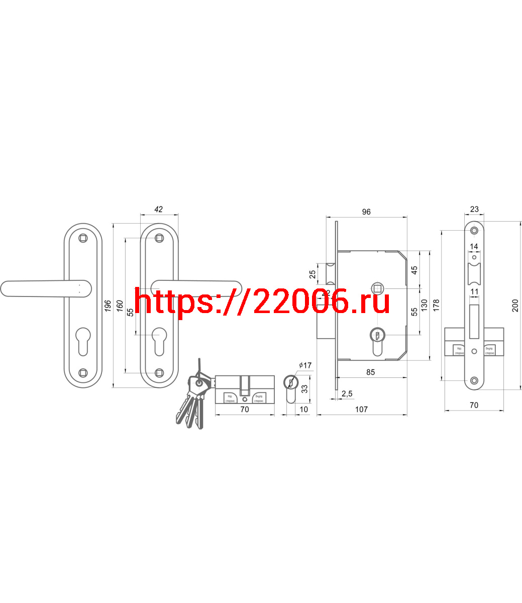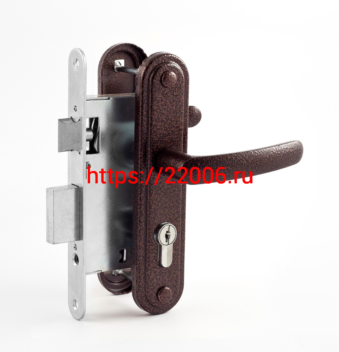 - Замок Omega (Омега) врезной цилиндровый с защёлкой в комплекте с ручкой ЗВ7.02 (медь), 4 кл. в Нижнем Новгороде недорого