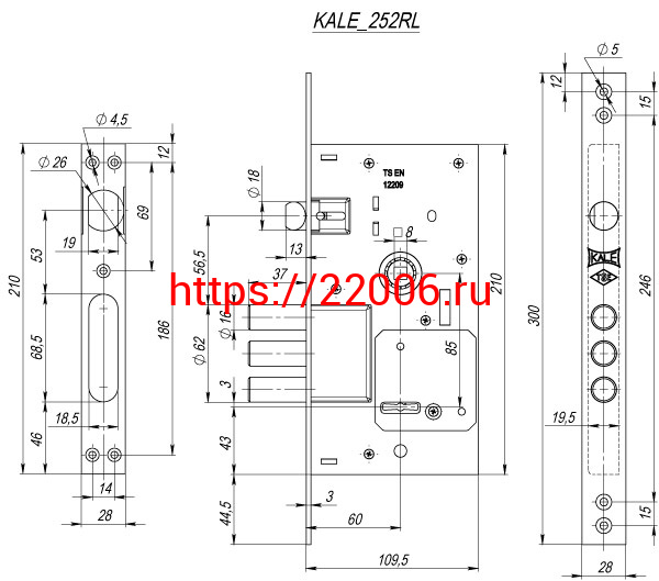 - Замок Kale kilit (Кале килит) врезной сувальдный с защёлкой 252/RL (тех. комплектация), 4 кл. (кл. 60 мм) в Нижнем Новгороде недорого