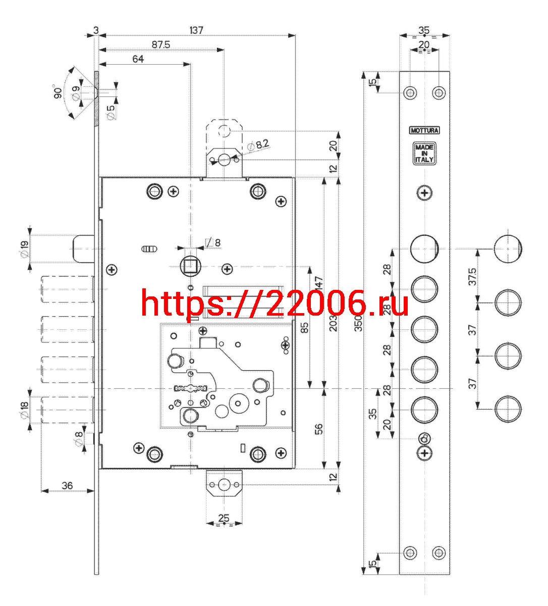 - Замок Mottura (Моттура) врезной сувальдный с защёлкой 52.J535M-D MyKey (правый), ключ 60 мм, без накл. в Нижнем Новгороде недорого