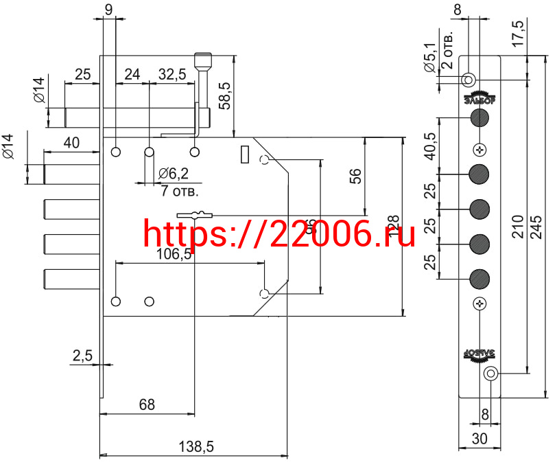 - Замок Elbor (Эльбор) врезной сувальдный с задвижкой Базальт 1.05.02, 5 кл. /00396/ в Нижнем Новгороде недорого