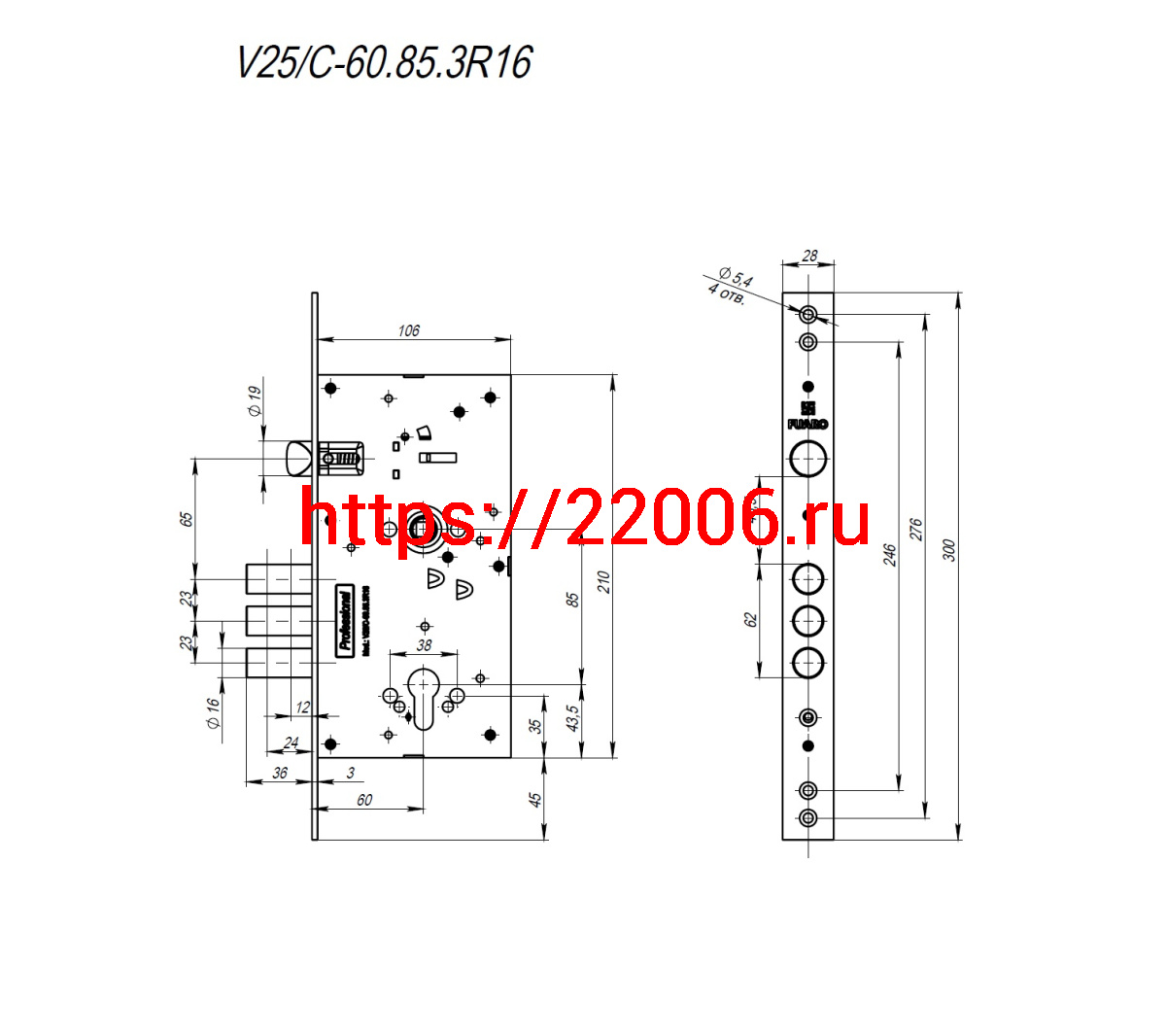 - Корпус Fuaro (Фуаро) врезного замка c защёлкой MDV25/C-60.85.3R16 в Нижнем Новгороде недорого