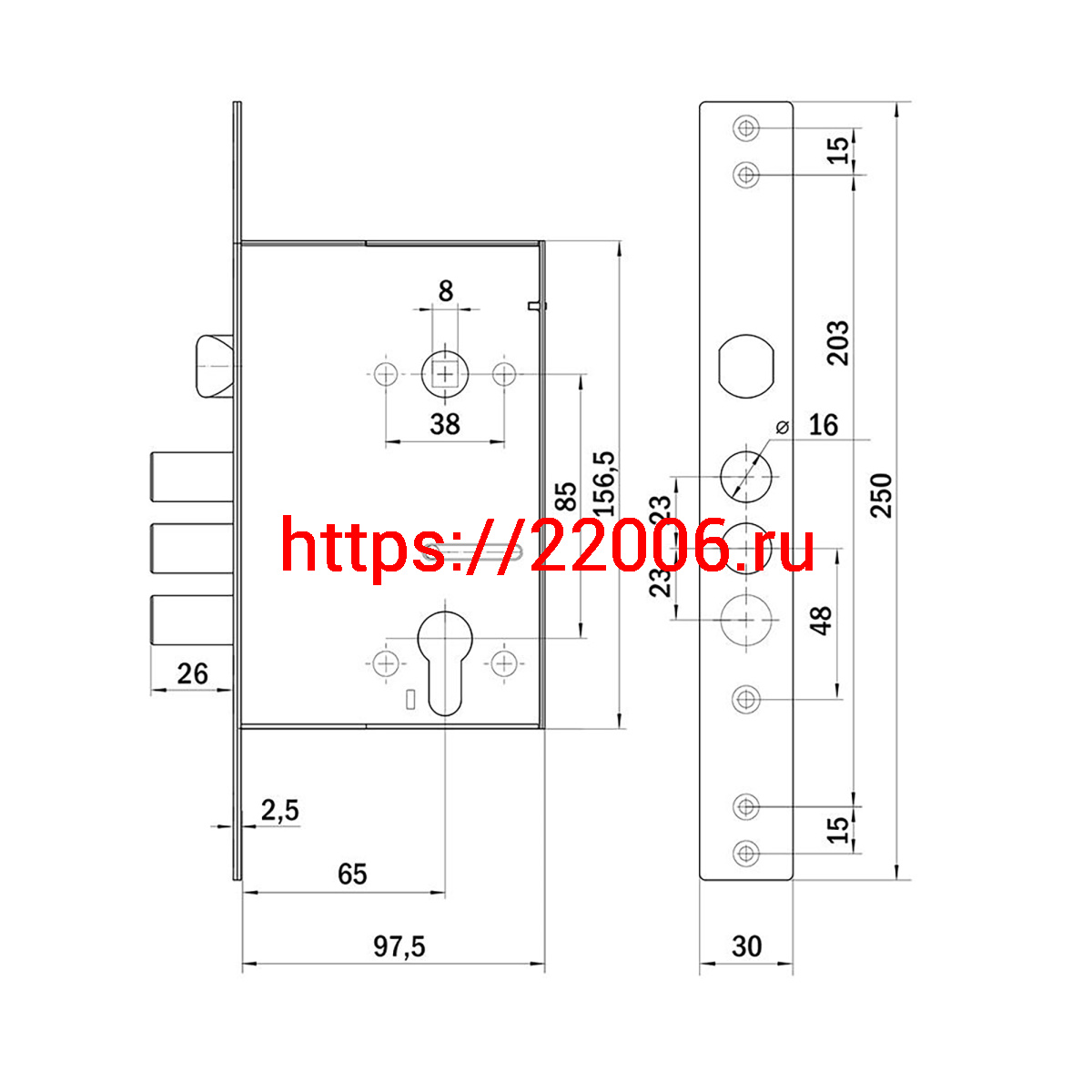 - Врезные электромеханические замки