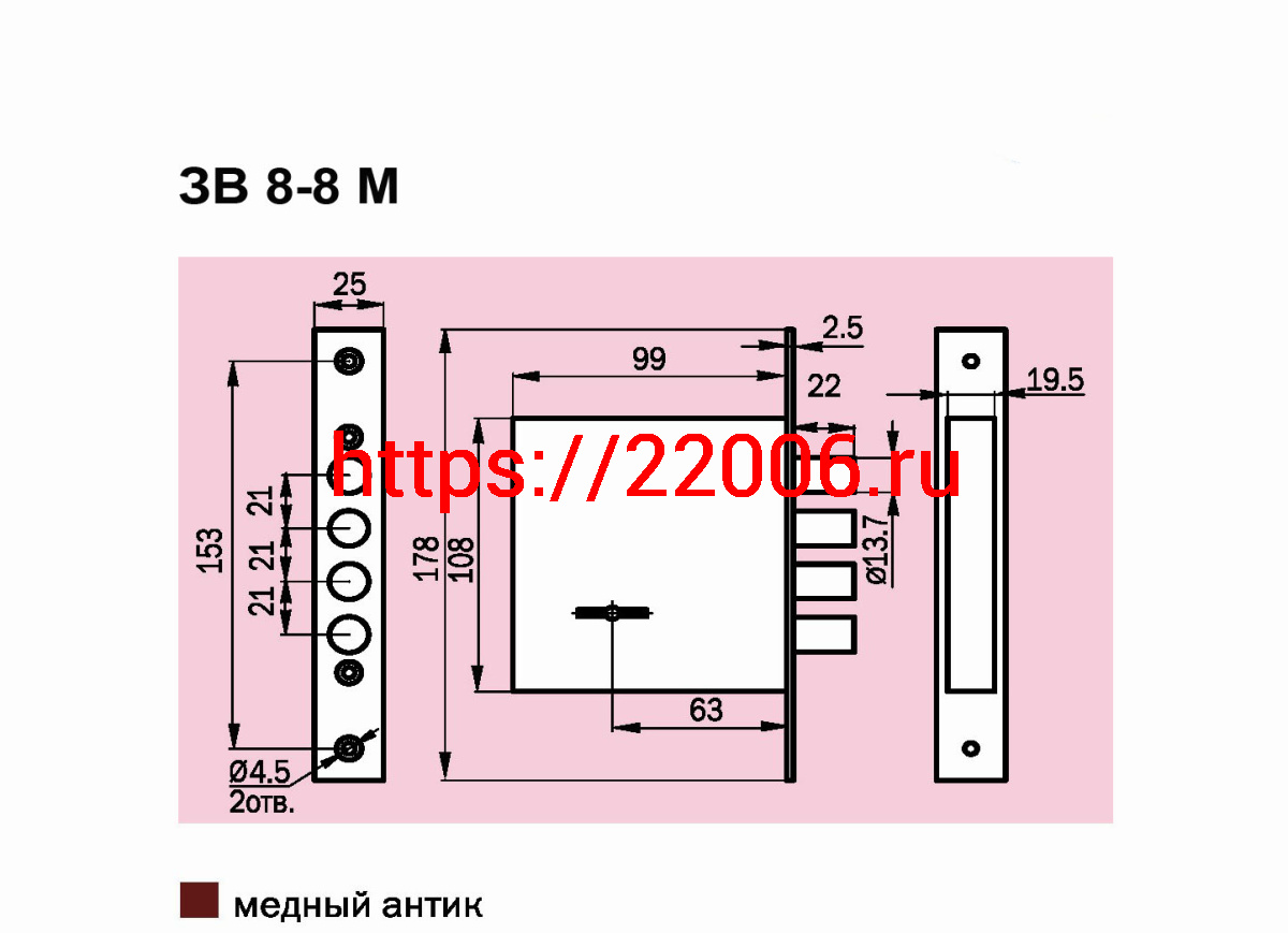 - Замок Sam (Сам) врезной сувальдный ЗВ8-8М/13 (без отв. планки), 3 кл. /81000/ в Нижнем Новгороде недорого