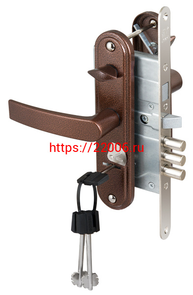 - Замок Sam (Сам) врезной сувальдный с защёлкой в компл с ручкой ЗВ9-8.3/13(КЛП5-85)прав (медн ант), 3 кл/88010/ в Нижнем Новгороде недорого