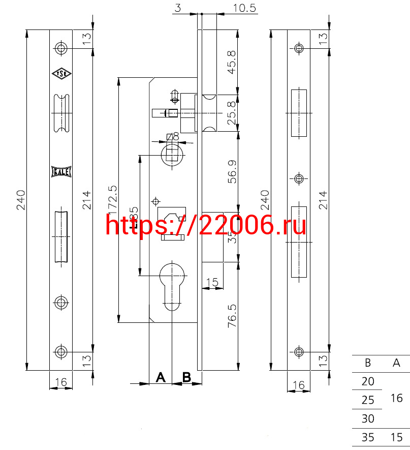 - Корпус Kale kilit (Кале килит) узкопрофильного замка с защёлкой 153/P (25 mm) w/b (хром) в Нижнем Новгороде недорого