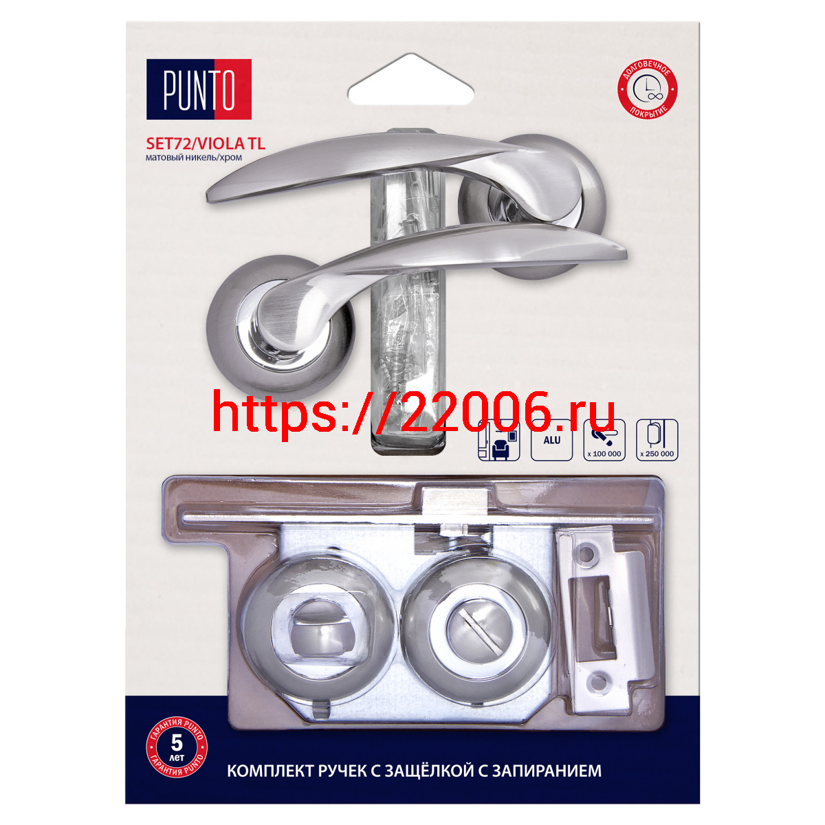 - Комплект ручек Punto (Пунто) с защелкой без запирания LM/A SET45R.TL54.VIOLA/HD SN/CP-3 матовый никель/хром в Нижнем Новгороде недорого
