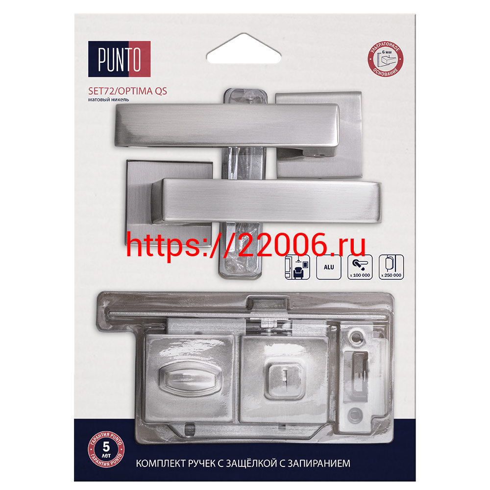 - Комплект ручек Punto (Пунто) с защелкой c запиранием LM/A SET72K.QS52.OPTIMA/HD SN-3 матовый никель в Нижнем Новгороде недорого