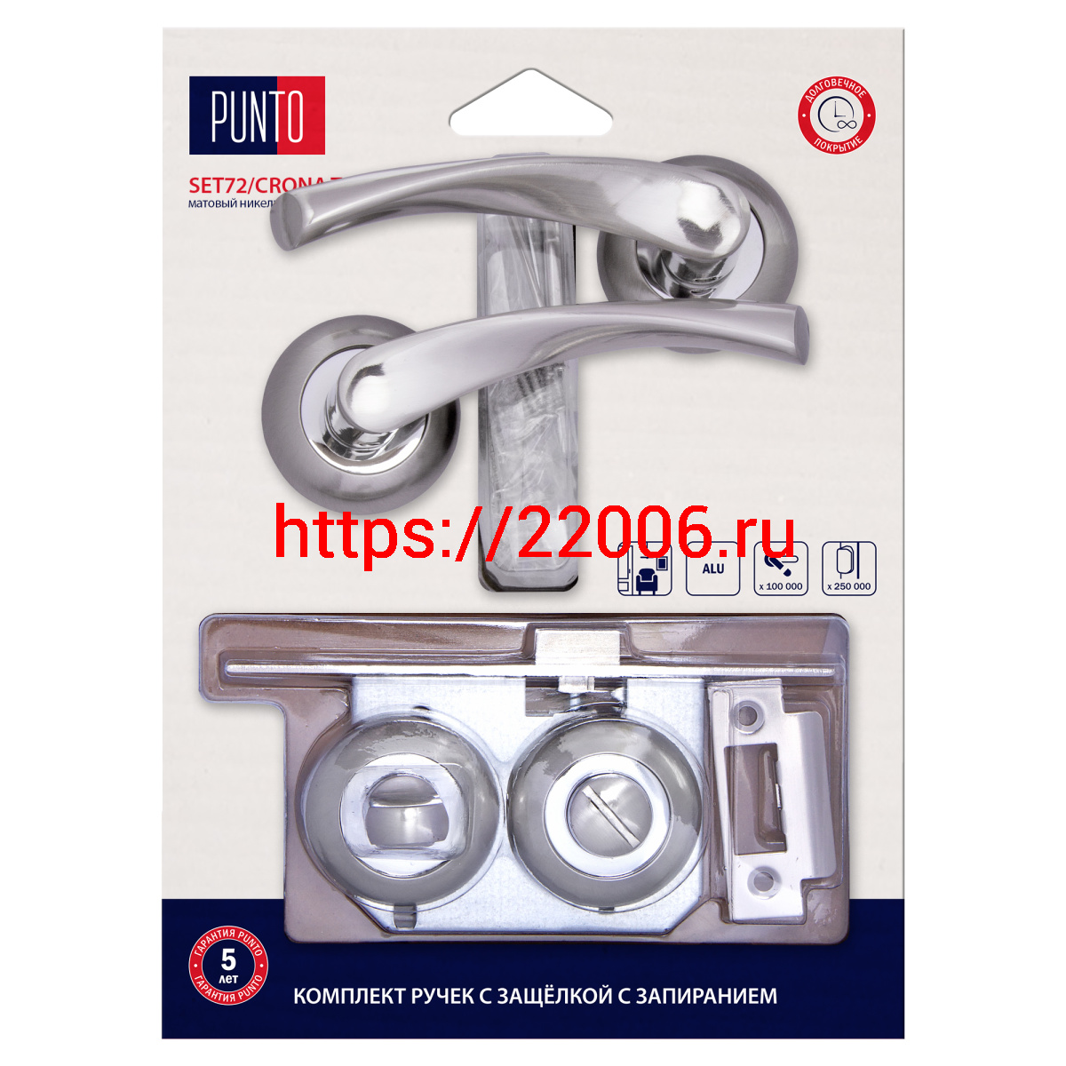 - Комплект ручек Punto (Пунто) с защелкой c запиранием LM/A SET72R.TL54.CRONA/HD SN/CP-3 матовый никель/хром в Нижнем Новгороде недорого