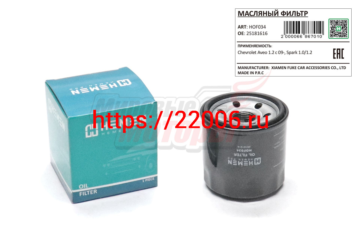 - Фильтр масляный Chevrolet Aveo 1.2 c 09-, Spark 1.0/1.2 (HOF034) в Нижнем Новгороде недорого