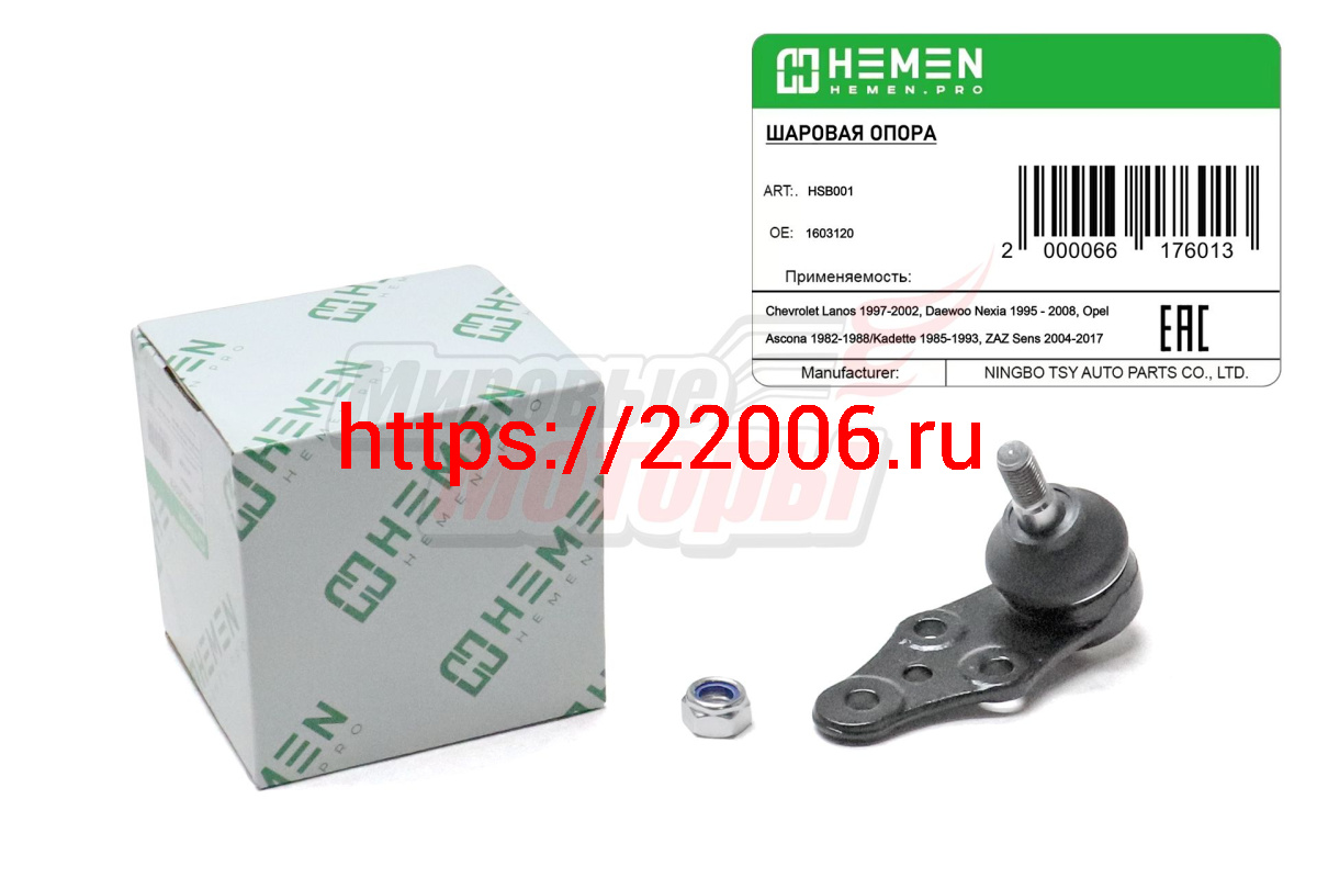 - Опора шаровая Daewoo Nexia 95-, Chevrolet Lanos 97-, ZAZ Sens 04- (HSB001) в Нижнем Новгороде недорого