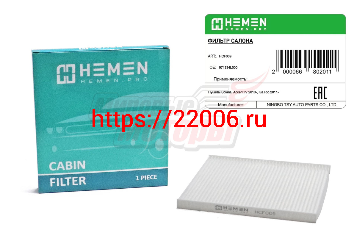 - Фильтр салона Hyundai Solaris, Accent IV 2010-, Kia Rio 2011- (HCF009) в Нижнем Новгороде недорого