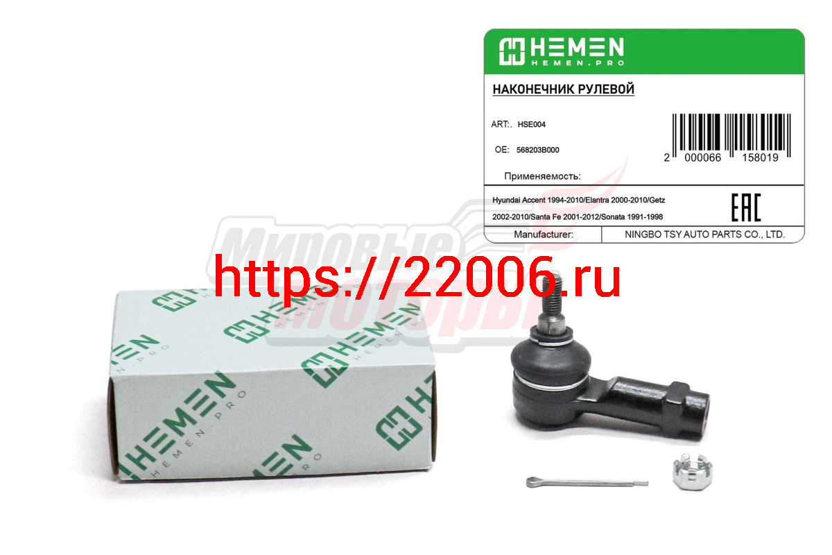 - Наконечник рулевой Hyundai Accent 94-, Santa Fe 01-, Getz 02-, Kia Spectra 04- (HSE004) в Нижнем Новгороде недорого