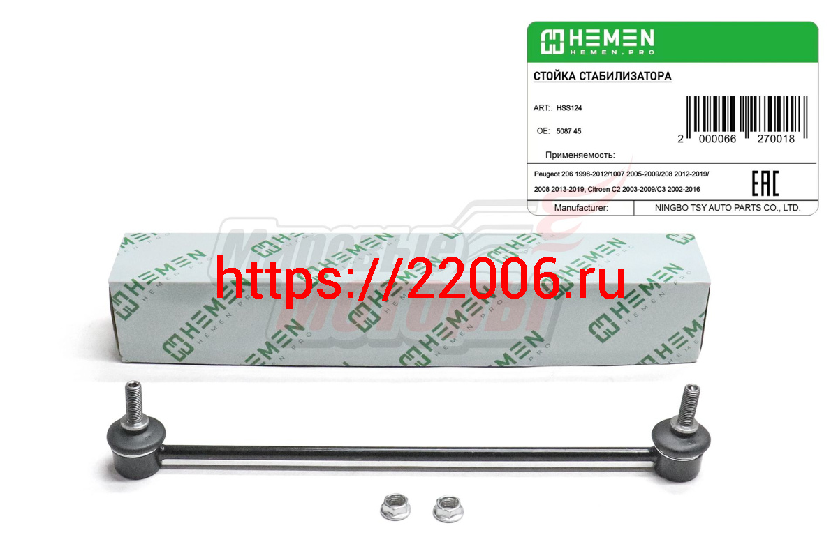 - Стойка стабилизатора передняя Peugeot 206 98-, 1007 05-, 208 12-, Citroen C2 03-, C3 02- (HSS124) в Нижнем Новгороде недорого