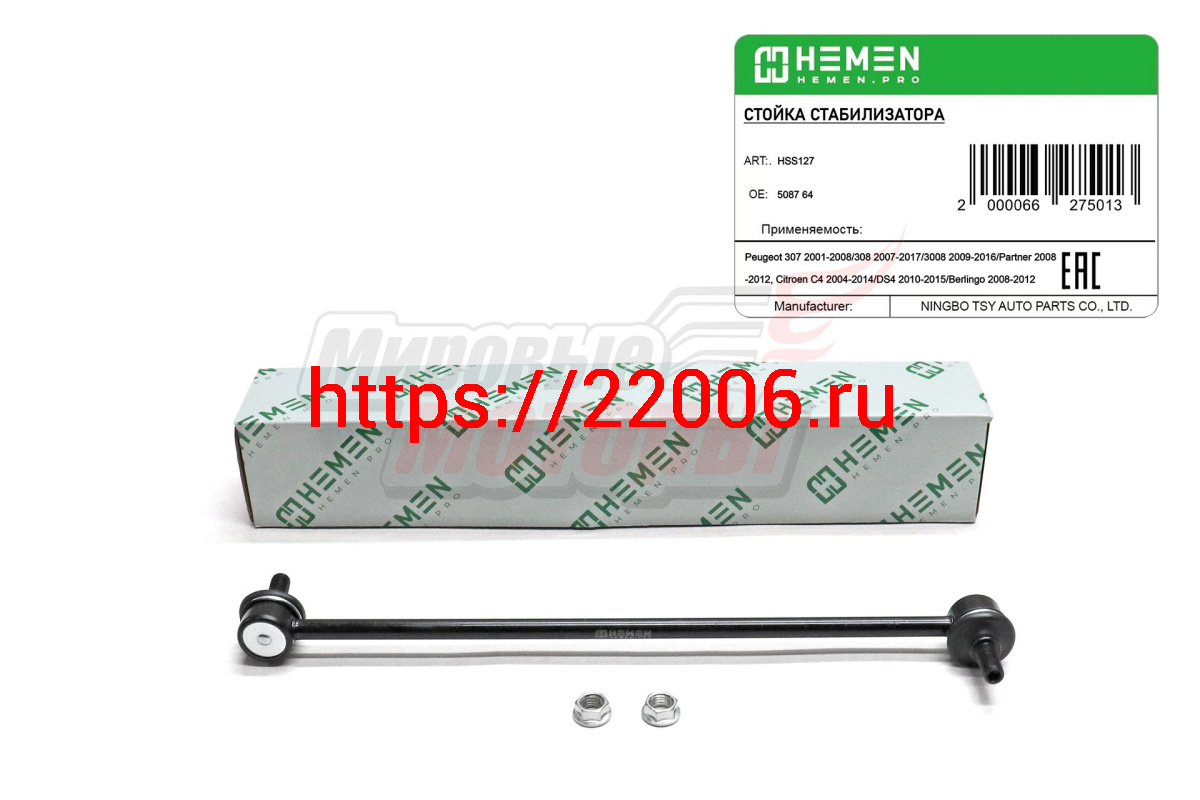 - Стойка стабилизатора передняя Peugeot 307 01-, 3008 09-, Partner 08-, Citroen C4 04- (HSS127) в Нижнем Новгороде недорого