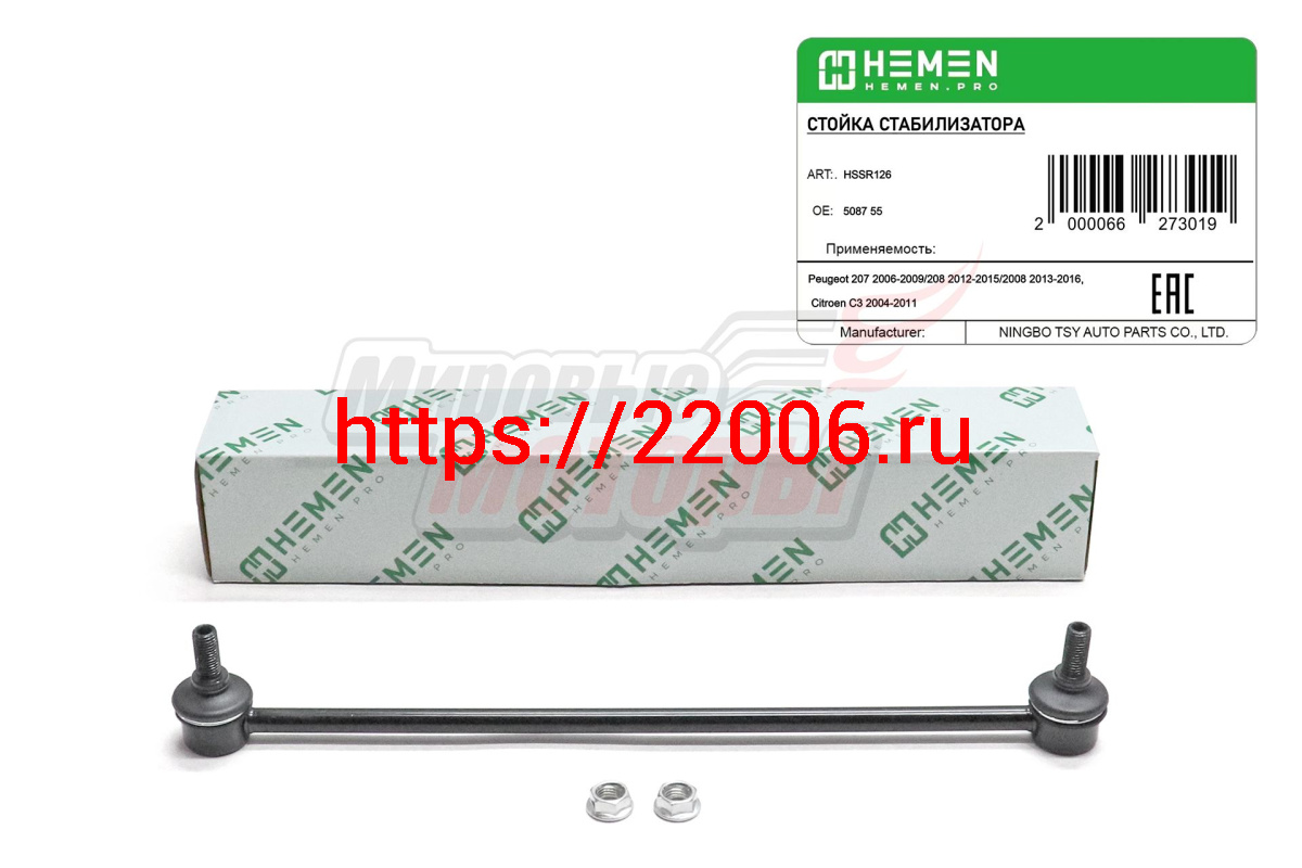 - Стойка стабилизатора передняя правая Peugeot 207 06-, 208 12-, 2008 13-, Citroen C3 04- (HSSR126) в Нижнем Новгороде недорого