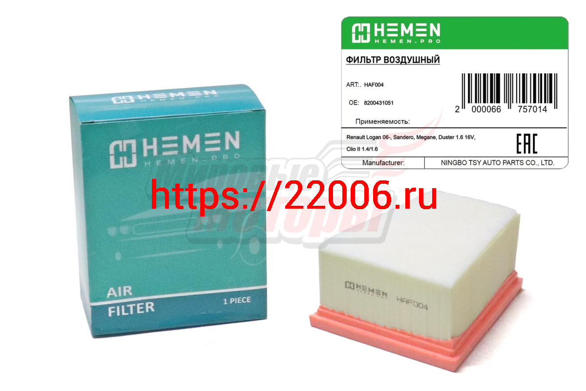- Фильтр воздушный Renault Logan 06-, Sandero, Megane, Clio II 1.4/1.6 (HAF004) в Нижнем Новгороде недорого