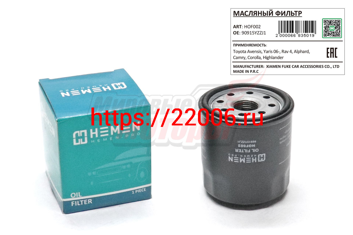 - Фильтр масляный Toyota Avensis, Yaris 06-, Rav 4, Alphard, Camry, Corolla, Highlander (HOF002) в Нижнем Новгороде недорого