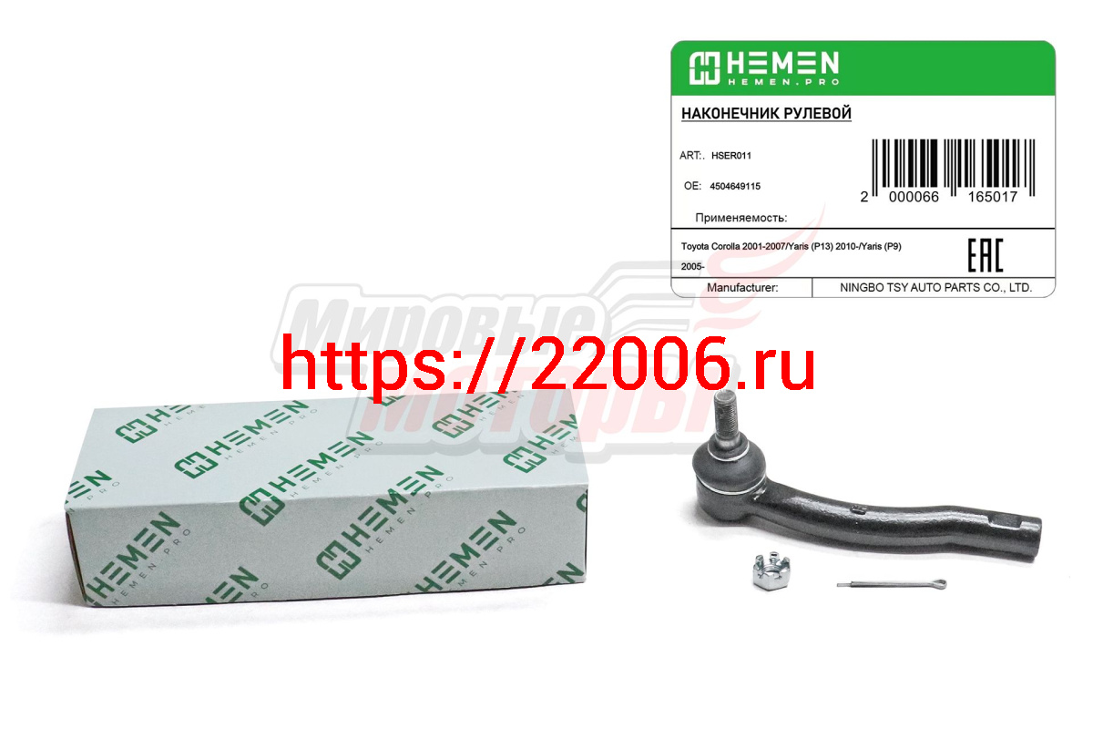 - Наконечник рулевой правый Toyota Corolla 02-, Yaris 05- (HSER011) в Нижнем Новгороде недорого