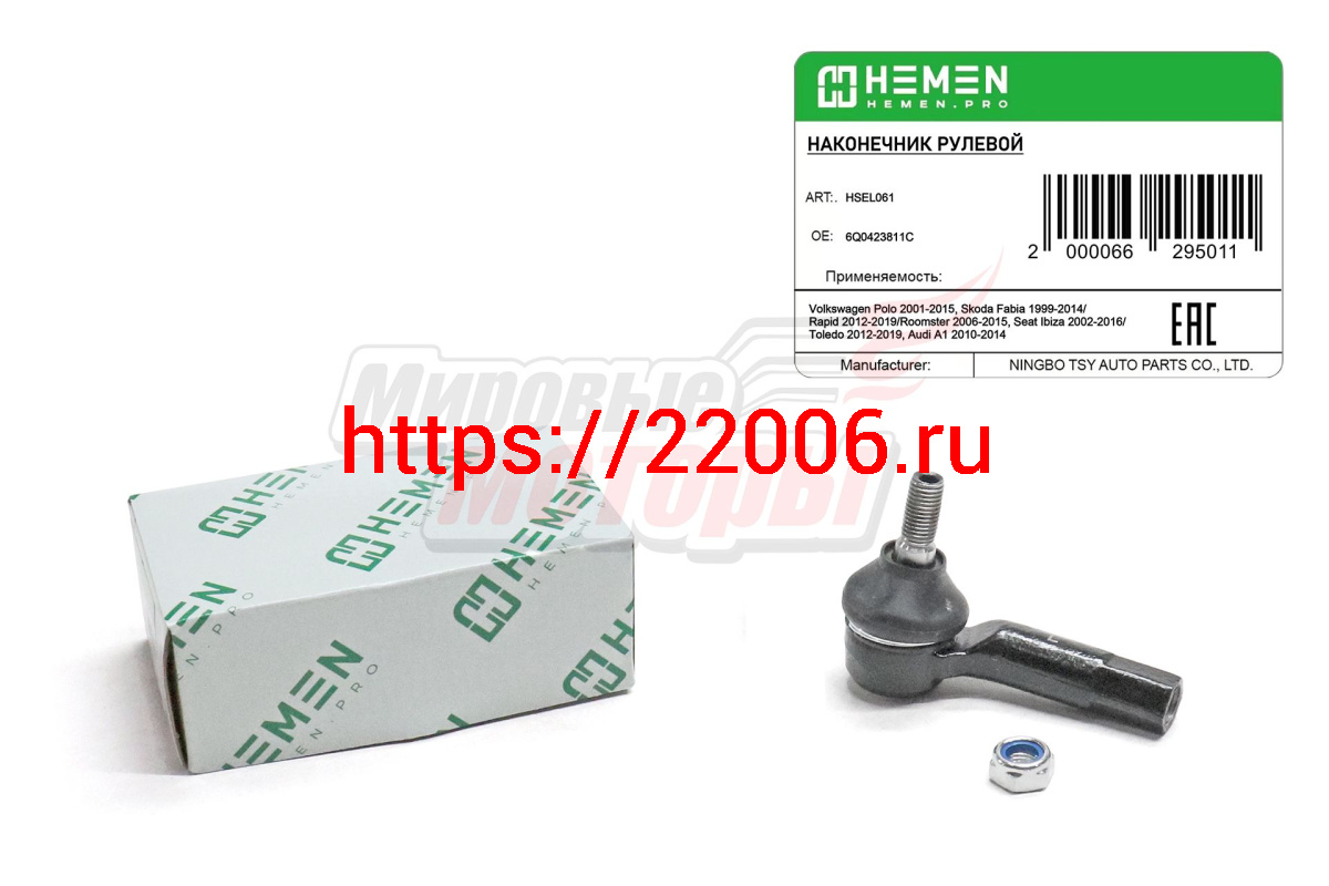 - Наконечник рулевой левый Volkswagen Polo 01-, Skoda Fabia 99-, Rapid 12-, Seat Ibiza 02- (HSEL061) в Нижнем Новгороде недорого