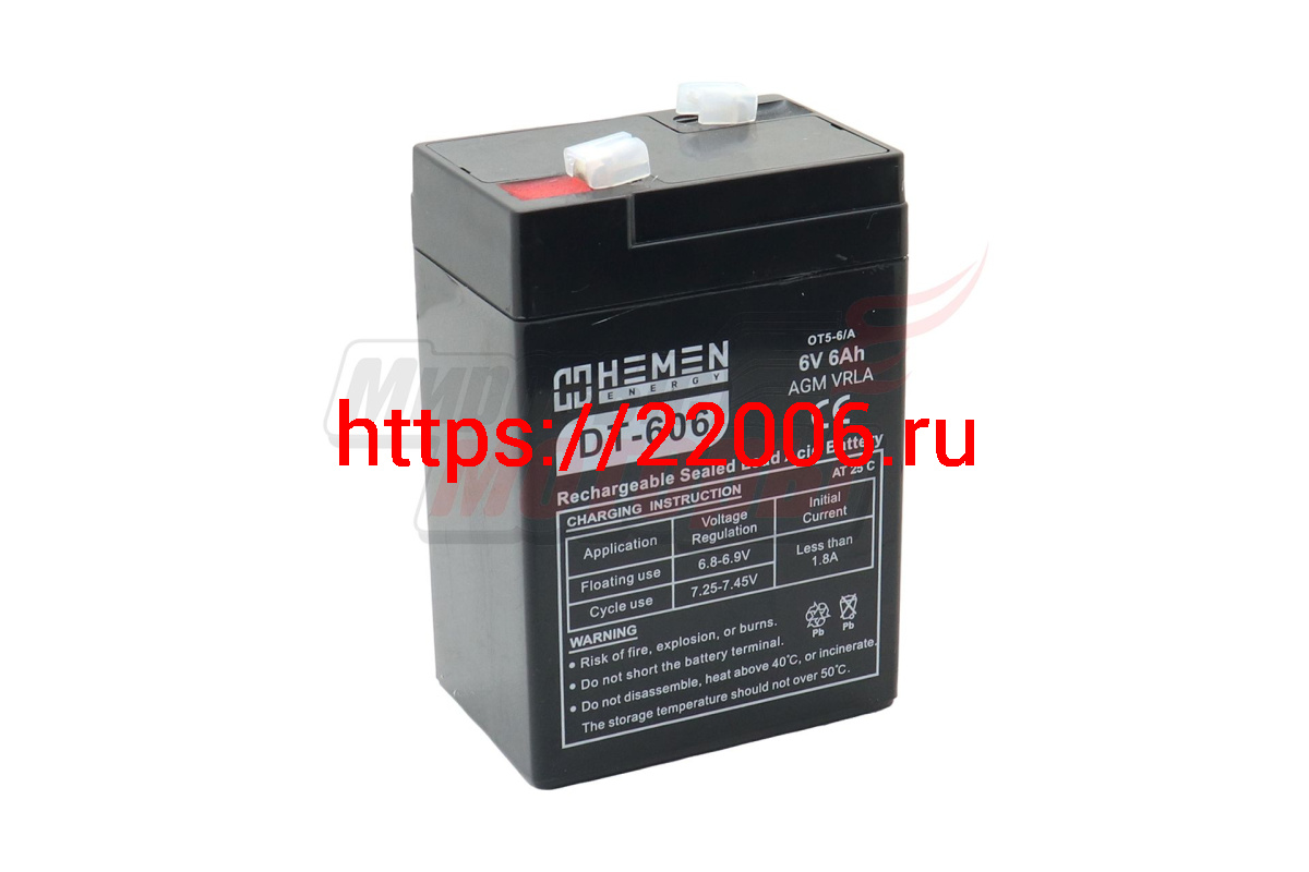 - Аккумулятор герметичный 6В 6Aч HEMEN ENERGY DT606(OT5-6/A)(70x48x100mm)(электромашинки) в Нижнем Новгороде недорого