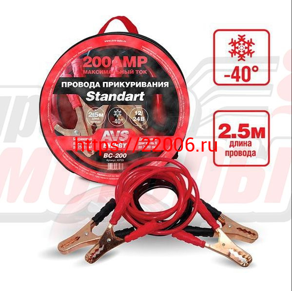 - Провода прикуривателя "AVS" Standart морозостойкие 200А/2,5м (ВС-200)(в сумке) в Нижнем Новгороде недорого