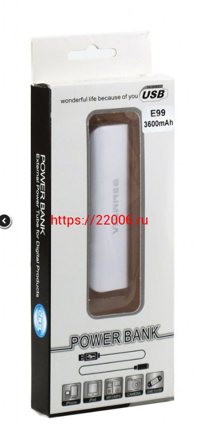 - Внешний аккумулятор Е99 3600mAh (1 USB; 91х30х21мм; 60гр) в Нижнем Новгороде недорого