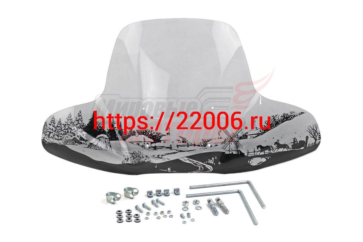 - Щиток ветровой "Деревня" (жесткое стекло с шелкографией) (3мм) (для квадроциклов) (с крепежами) в Нижнем Новгороде недорого