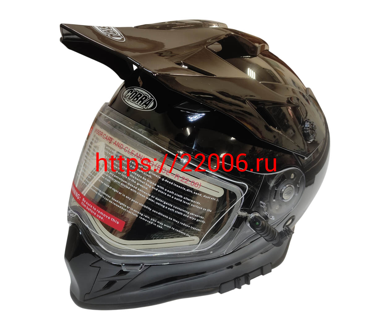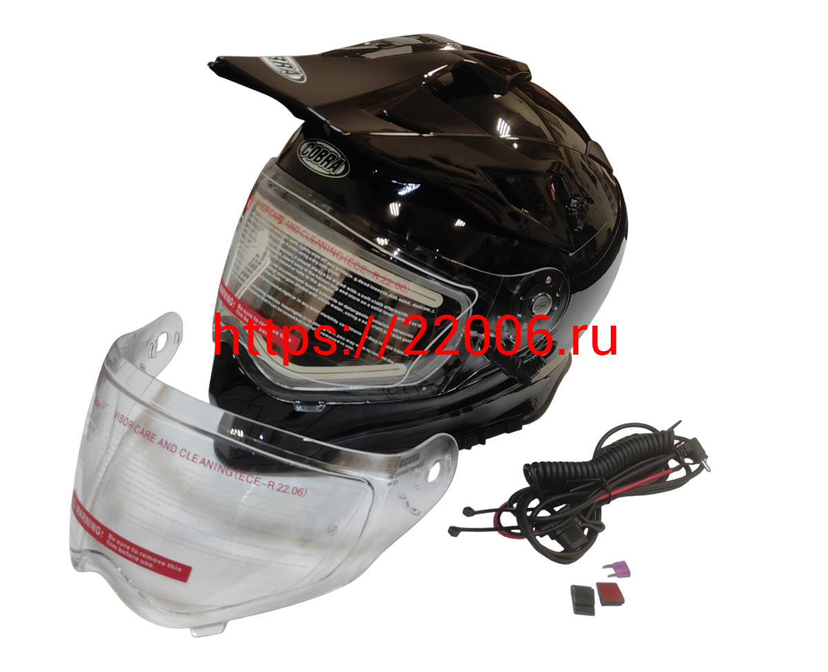 - Шлем кроссовый со стеклом (туринг) СНЕГОХОДНЫЙ COBRA EC H331, черный, с ПОДОГРЕВОМ ВИЗОРА, размер S в Нижнем Новгороде недорого
