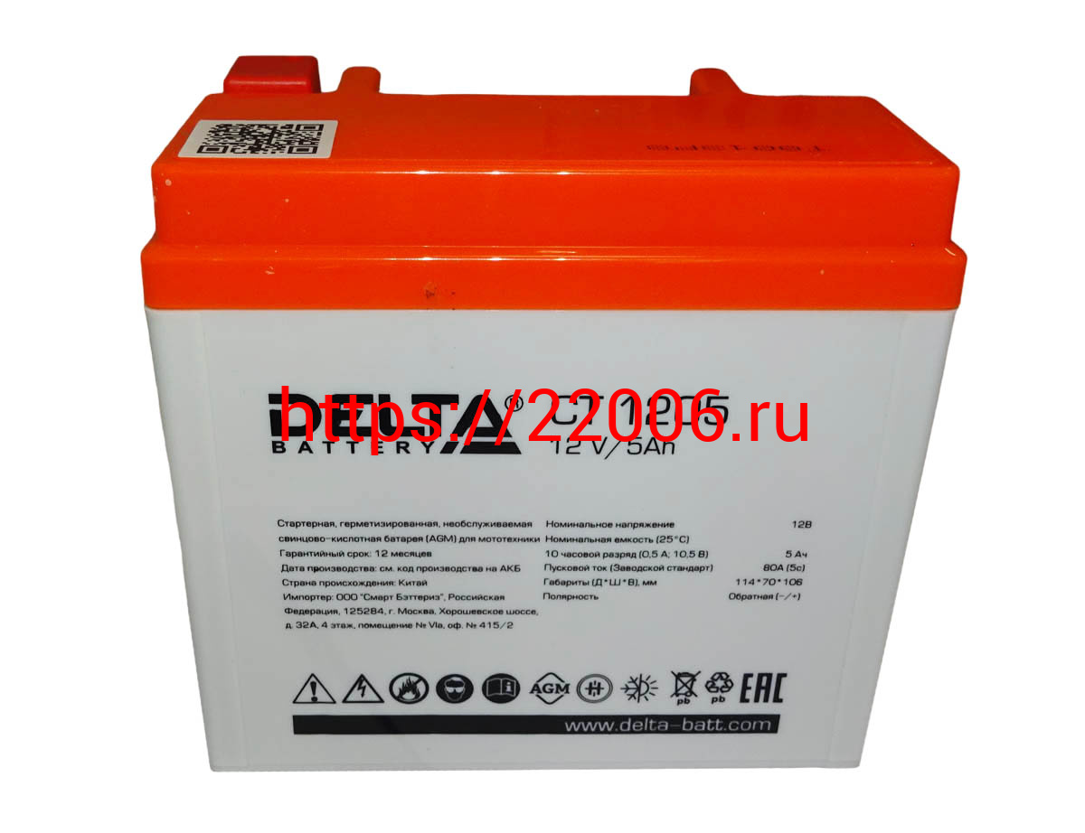 - Аккумулятор 12В 5 А/ч, кислотный AGM (Delta СТ 1205) (113х70х106) обратная полярность, для Альфы в Нижнем Новгороде недорого